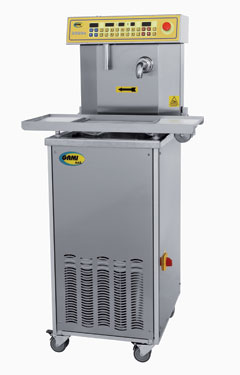 Continuous temperers are usually stand-alone machines or built into enrobers. They are generally used in larger scale operations and are correspondingly more expensive. KeyChoc are the UK distributors for Gami continuous temperers from Italy.