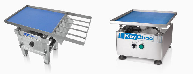 With the table-top moulding machines or the melting and holding tanks, a very useful accessory to invest in is a free-standing vibrating table. This saves a lot of time which would otherwise be spent tapping your moulds either to empty them or to remove air bubbles and can considerably improve both your productivity and the quality of your chocolates.