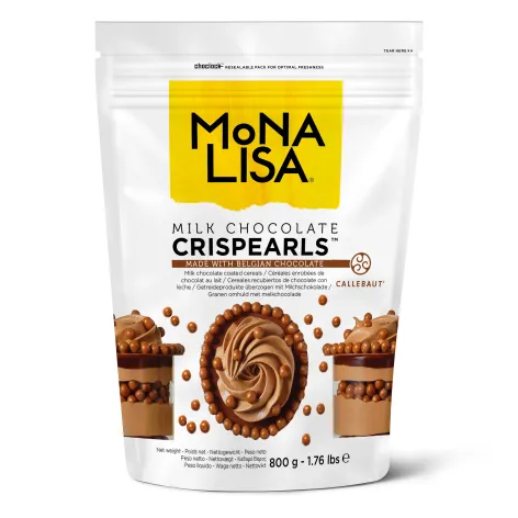 Milk chocolate Crispearls™ combine Callebaut's 823 milk chocolate with a crispy heart of toasted biscuit. They're great for grazing or as a mini-snack with coffee or tea. Milk chocolate Crispearls™ are also perfect for adding an exciting finishing touch to your desserts or pastries. Just sprinkle on top of glazed cakes, entremets or desserts to add your elegant touch of pure indulgence. Mixed into chocolate mousse, ice cream or bavarois, they add a crispy chocolate texture to your desserts and remain crunchy.