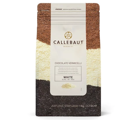 Callebaut's White Chocolate Vermicelli is made from the finest quality Belgian chocolate, with a deep gloss exterior thanks to their unique processing method. Perfect for decorating baked goods and desserts, hot chocolate drinks and ice cream or gelato.
