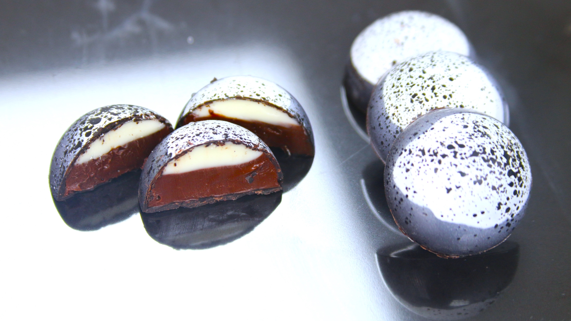 - Temper the chocolate, and pipe it into the moulds to cast the shells