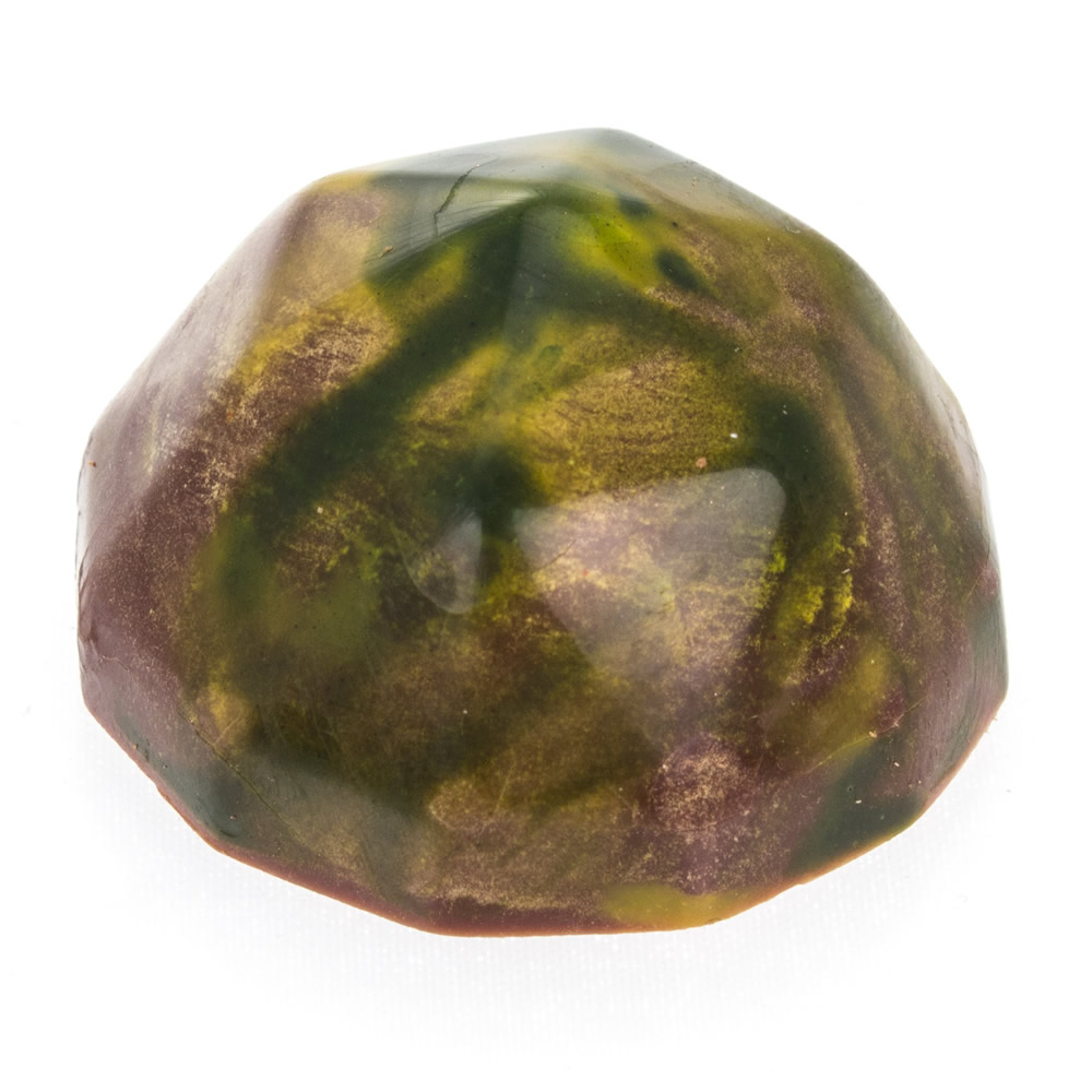 - Using a small paintbrush, paint green (SCR471) and yellow (SCR472) cocoa butter colours into each cavity of the mould.