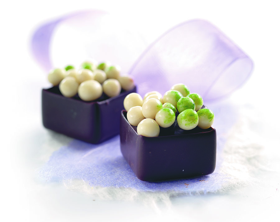 White chocolate Crispearls™ combine Callebaut's W2 chocolate with a crispy heart of toasted biscuit. They'...